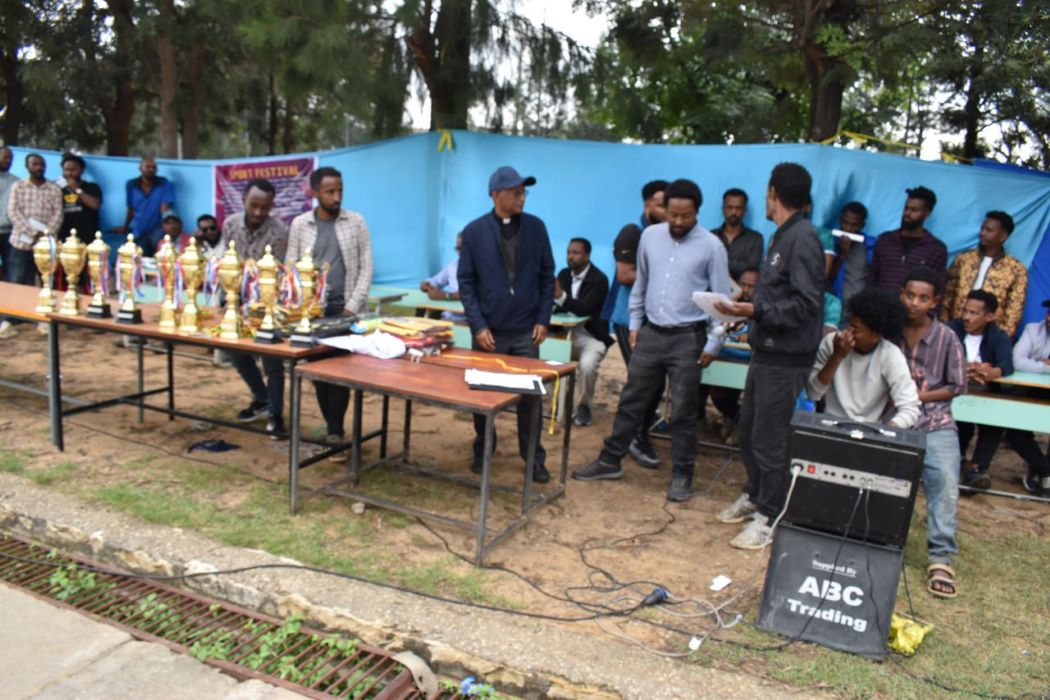 With the collaboration of Wukro St. Mary’s College and Wuro Education office, on slogan “Sport for Peace and Development”, held in St. Mary’s College in 10 different types of sport (football 36 teams, basketball 8 teams, handball 4 teams, badminton 3 teams, Cycle 4 teams. Athletics 6 teams, Ground tennis 10 teams, Skating 6 teams, Teakando show, circus show), in total 1382 directly participated in the competitions and daily more than 3500 people were attending for one full month.